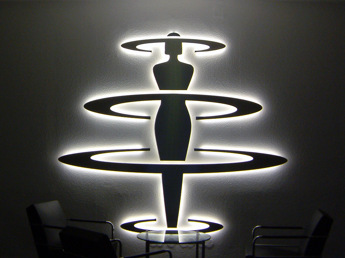 3mm Edelstahl waren ausgelasert. Neon war gebogen.